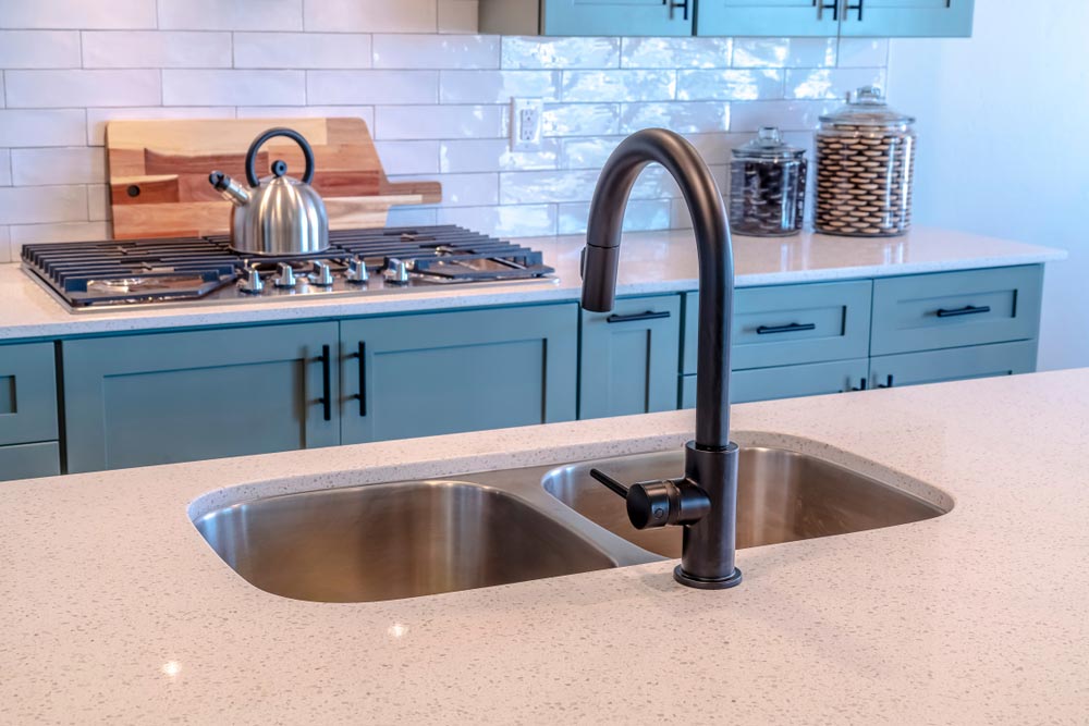 Top-Mount Sinks: Here, the rim or ridge of the sink is visible and fits on top of the counter as the sink rests in a hole cut on the countertop. As they don’t need any additional support, they are less expensive to install than under-mount sinks but are more difficult to keep clean.