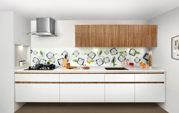 If a modern design is your favourite aesthetic, this white modular kitchen design must be the kind of space you’ve been dreaming of. While the overall structure and cabinets are in white, the Prussian blue walls add a sense of sleek richness to your Kitchen Design. The contrast these shades give birth to is the balance that makes any space highly appealing.