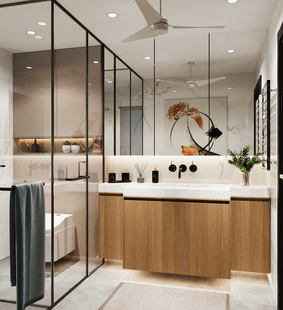 “The way we use lights in the bathroom can dramatically transform it, so it is important to plan and design lighting meticulously,” say Hardesh and Monica Chawla, Founders & Interior Designers, Essentia Environments. A combination of multiple lights from low-level ambient lights to accent spotlights, and cove lights to pendant lights works best to highlight the diverse design elements, as well as create a dreamy mood, suggests Meenu Agarwal, Founder & Interior Designer, MADS Creations. She also recommends a lighting scheme that accentuates décor accessories while casting a soft glow for the perfect ambience.