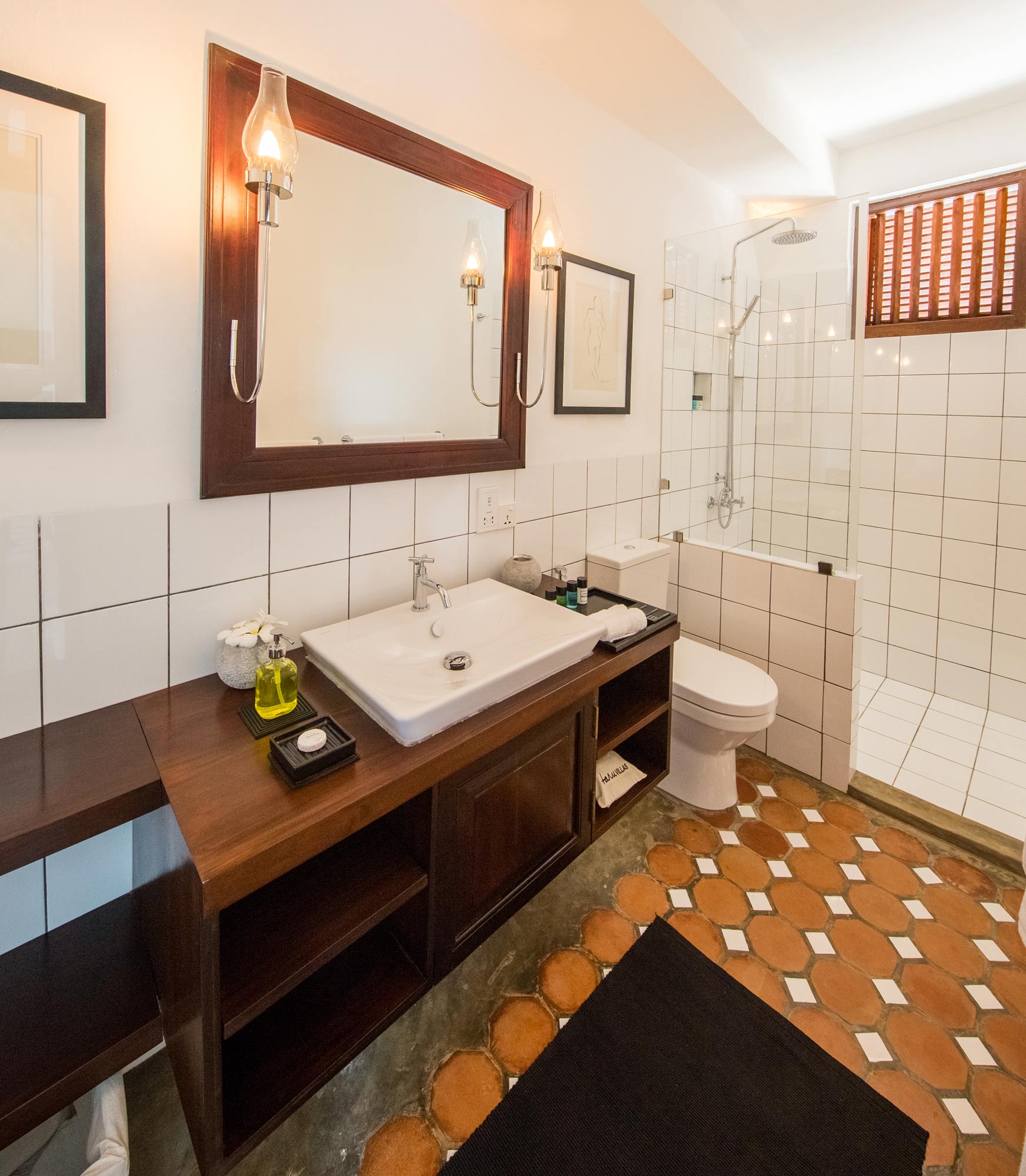 Different brands of ceramics have variations even within whites and ivory colours. Hence, washbasin and WC for each bathroom should be bought from the same brand for a consistent look.