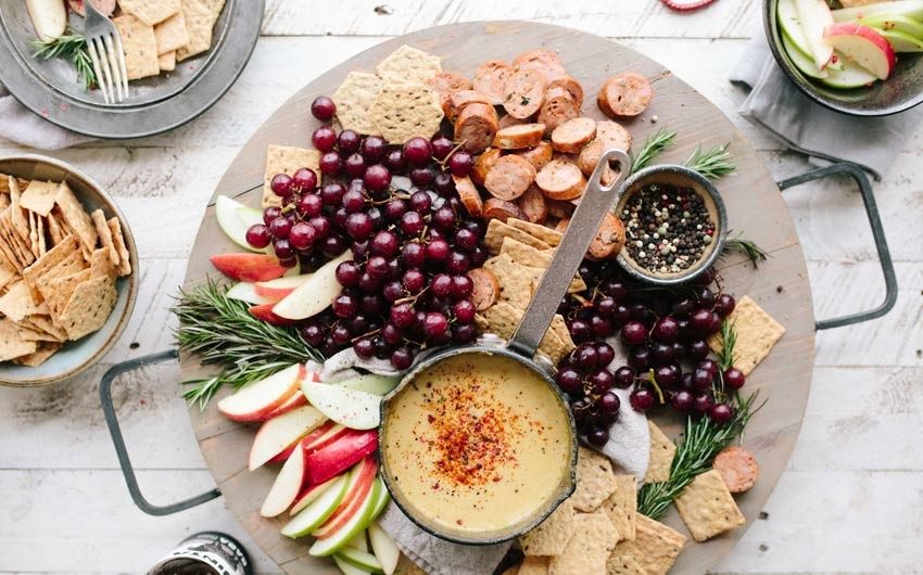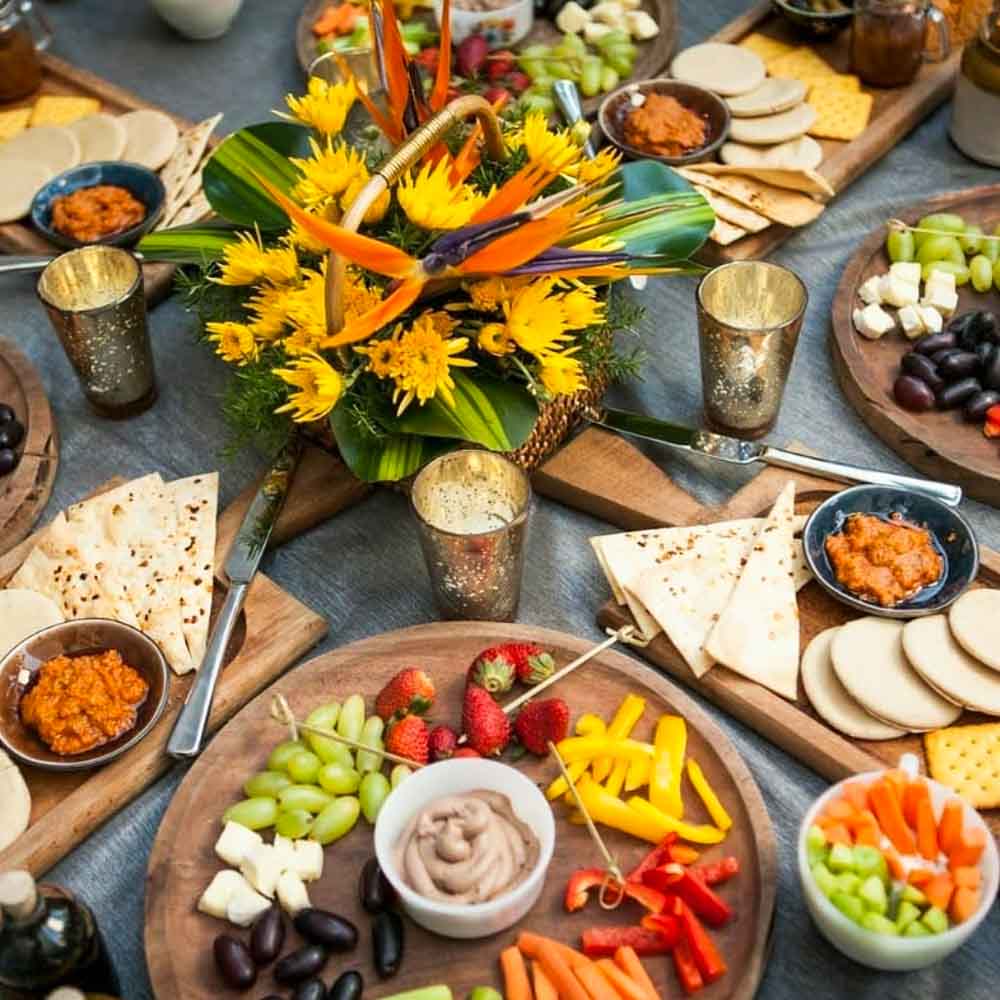 She says, “There's a little something for everyone to nibble on during cocktail hour without ruining dinner. Put out 2-3 kinds of dips, and an assortment of things that can act as a carrier for those dips: chips, herbed crackers, crusty toasted bread, and veggie sticks. The bonus: the spread will look like it took a lot of effort and will impress your guests!”