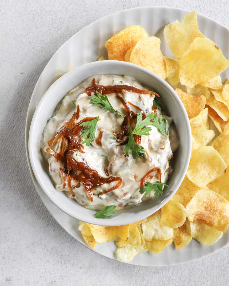 Here, she shares her recipe for creamy French Onion Dip. Yes, you do need to invest a little time and some good knife skills to slice the onions—but with that out of the way, it comes together quickly, and is guaranteed to please even the pickiest palate. Vidushi adds, “You can make this dip a day ahead. Believe it or not, the extra time in the fridge allows the flavours to meld together better!”