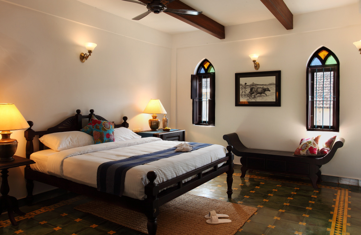 Who said minimal interiors must be vanilla? The rooms of Waterfront Granary, Kochi will make you rethink your perception of minimal. Located in an old 1877 granary, the retreat has a distinct laid-back feel to it. The furniture in dark wood is beautifully complemented by bright accessories and fresh flowers.