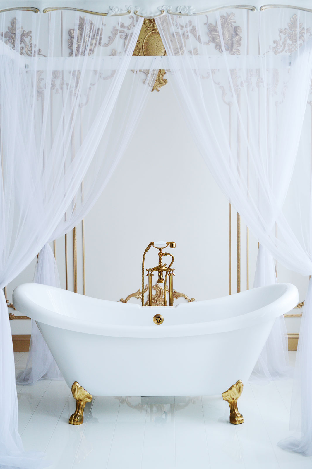 Nothing like a clawfoot bathtub to spell luxury and vintage at the same time. Treat it like a sacred cabana by adding mul curtains on all sides. Now all that you need are some bath salts and candles.